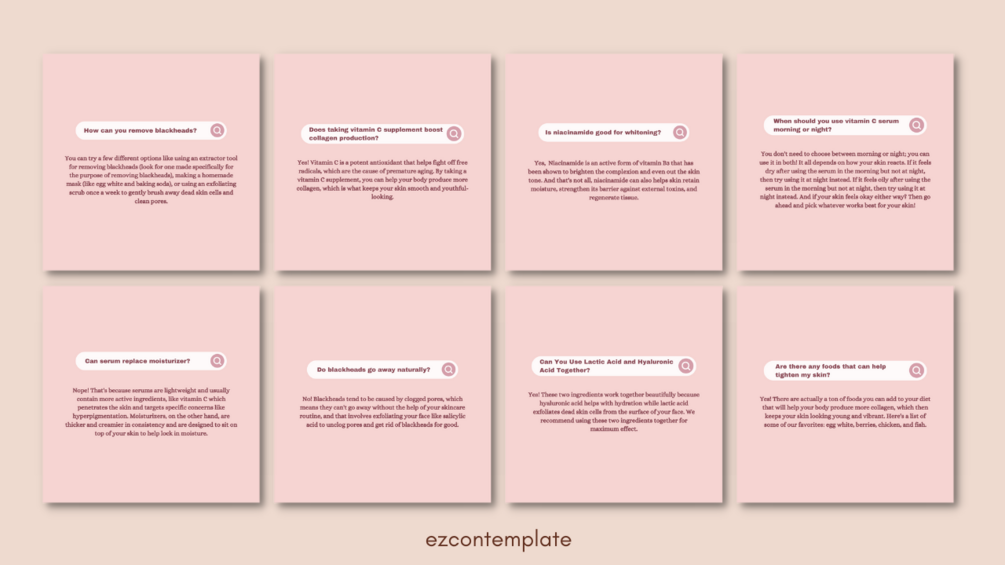 Using our skincare faq Instagram template is the best way to be the expert in your field and market yourself in an intelligent way so people will think you are one of those dermatologists. This is the answer to your struggle searching google full time.